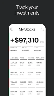 - Watchlist: Easily track your portfolio’s performance by adding stocks, mutual funds, ETFs or currencies to your personal Watchlist, and get the latest news related to your investments.