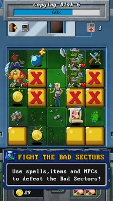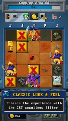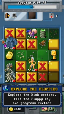 Bad Sectors in forms and shapes of enemies from different classic games will constantly try to prevent your progress, turning each floppy into a field of battle. Luckily, you can use other types of data found on the floppies, such as Spells, Potions and even Cheat Codes for your advantage.
