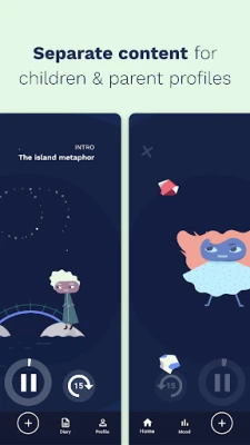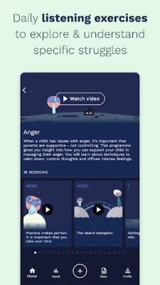 Parent and children profiles therefore have separate app-content that is specifically tailored to them and their level of understanding. In this way, you and your child will be guided through parallel sessions with each other, and this will allow you to work together to help your child thrive again.