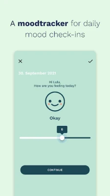 MOODTRACKER: With daily mood check-ins you can keep a detailed track of your personal growth with an overview of your weekly mood fluctuations as well as your top feelings and activities.