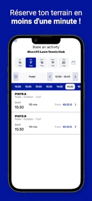 Fini la corvée de réservation ! Avec l'application tu n'as plus qu'à accéder aux créneaux disponibles et à en choisir un. Le club recevra alors automatiquement ta réservation.